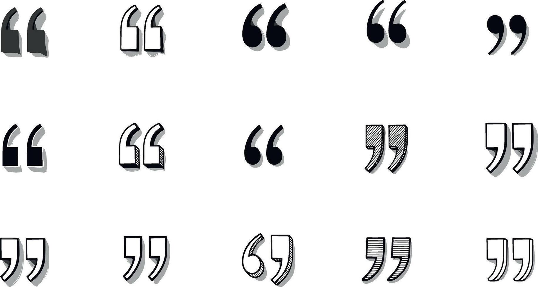 Versatile set of quotation marks and speech symbols in modern, 3D, and hand-drawn styles, perfect for typography, communication, and creative graphic design projects Pro Vector