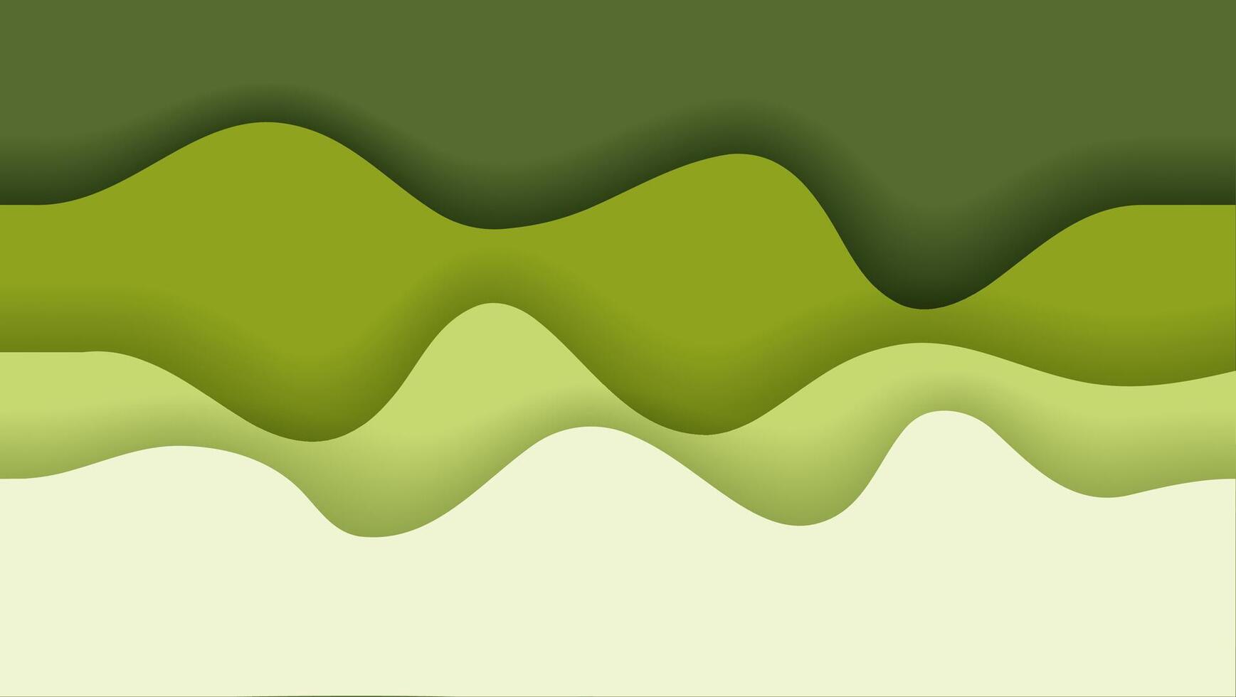 Four layers of green wavy shapes paper with drop shadows. Pro Vector