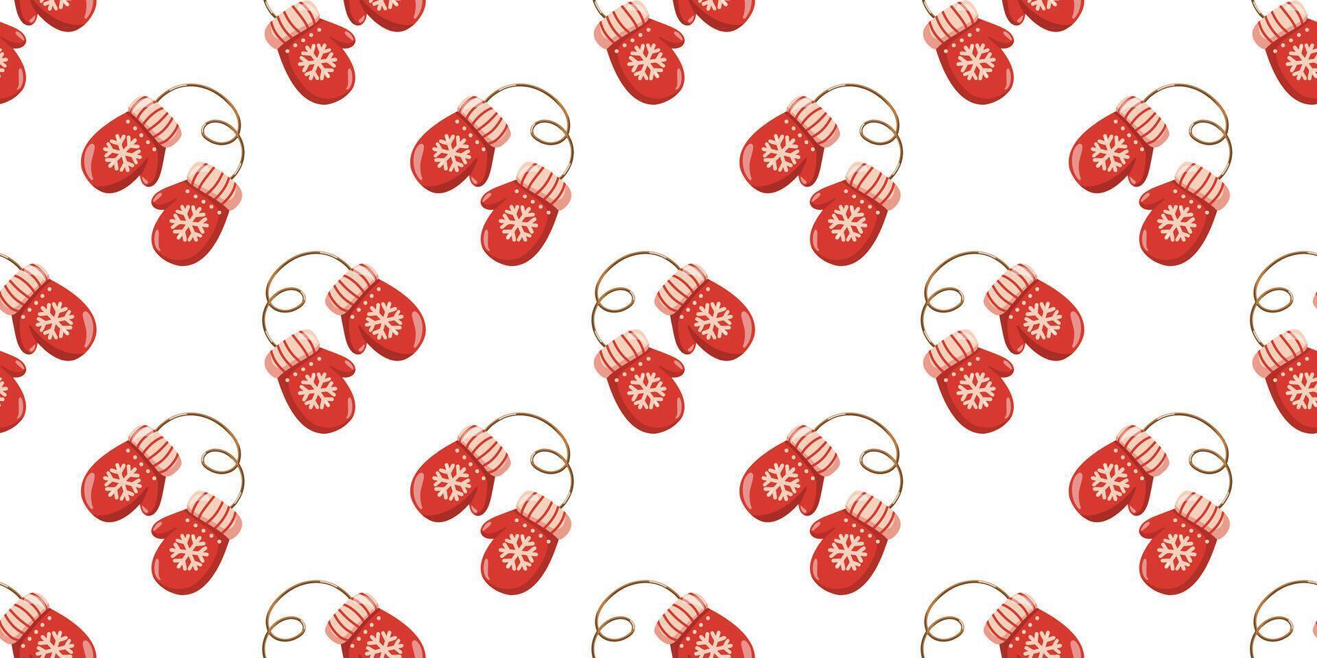 Seamless pattern with cartoon red mittens on string. Winter playful winter background. Pro Vector