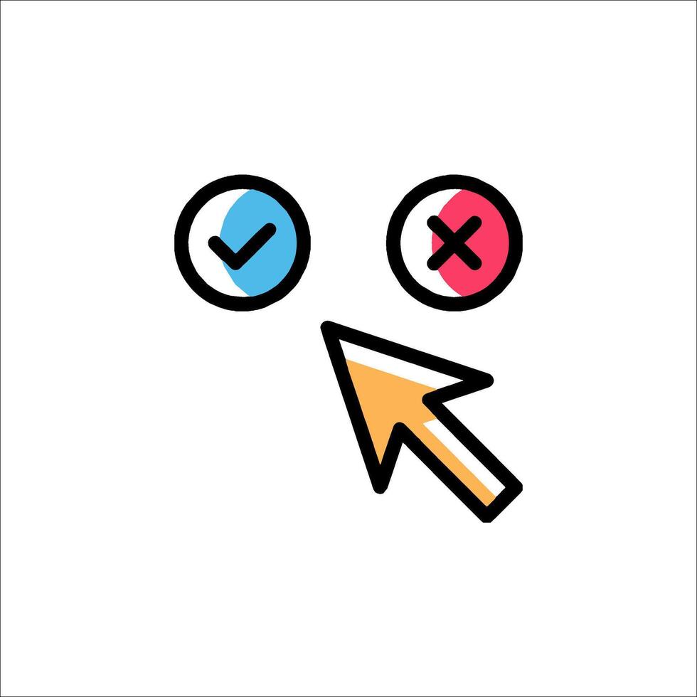 Checkmark and Cross Icon with Cursor Choice Concept, incorrect vector