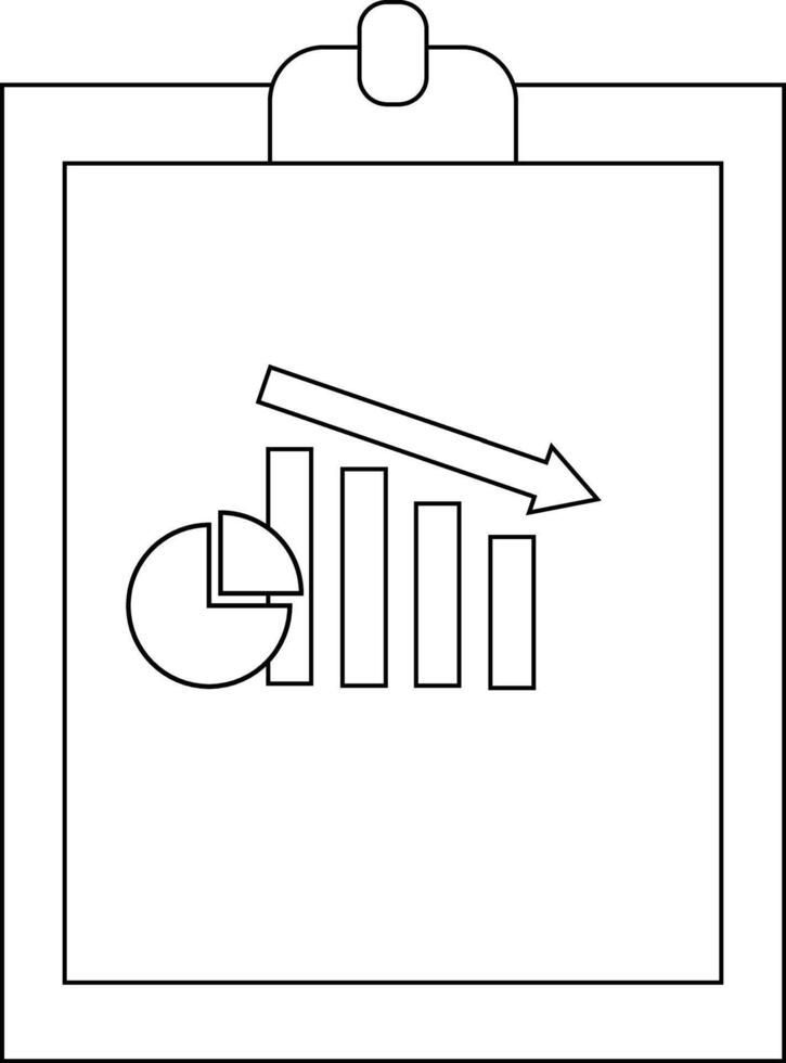 Chart on clipboard with downward trending arrow pie chart and bar graph vector