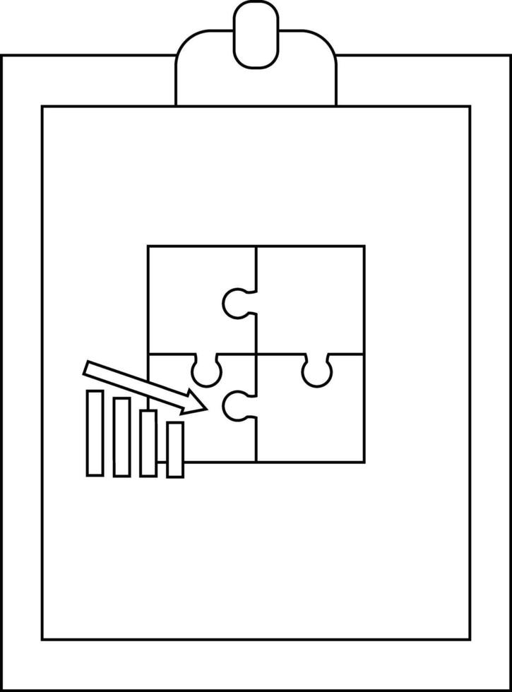 A clipboard contains a puzzle made of four pieces with a bar graph and arrow pointing towards it vector