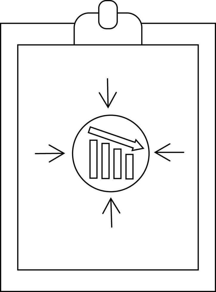 Clipboard with downpointing arrows converging on a graph showing a downward trend vector