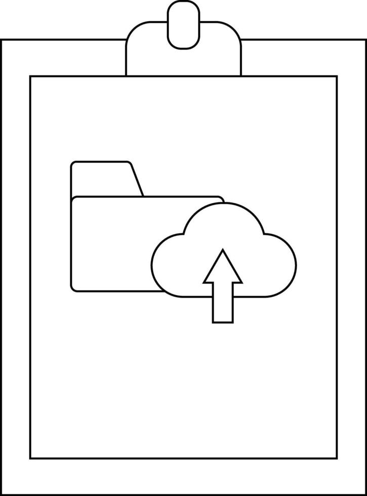 A clipboard with a document showing a folder beside a cloud with an upward arrow vector