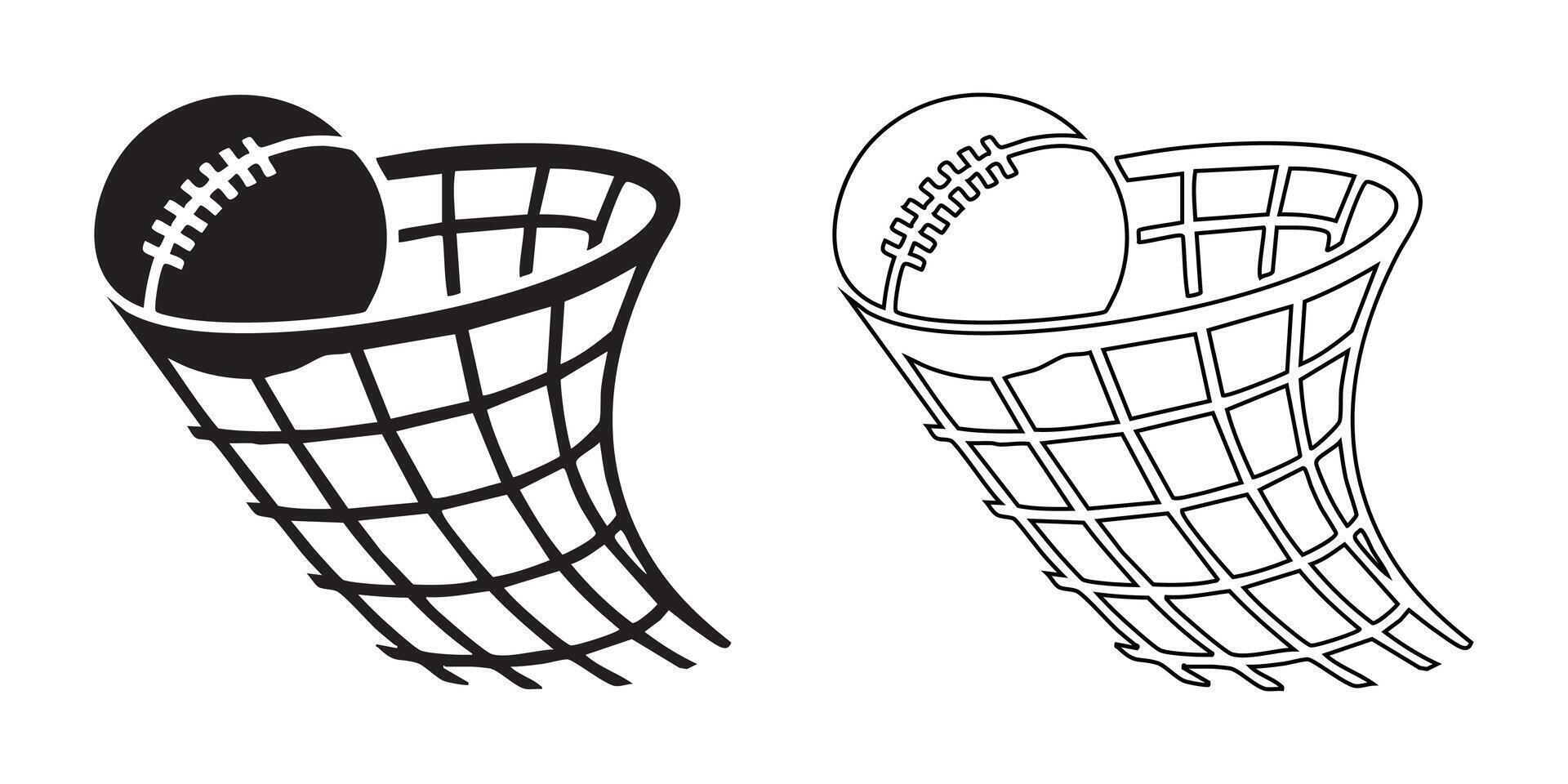 Two illustrations of a football caught in a net showing different styles Free Vector