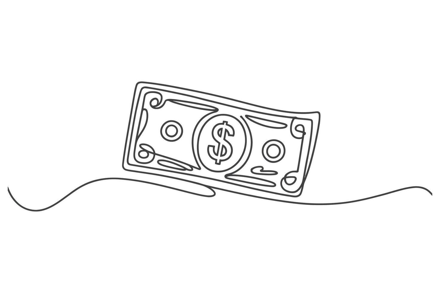 Minimalist continuous line drawing of a us dollar bill with a wavy line representing movement or flow of money Pro Vector