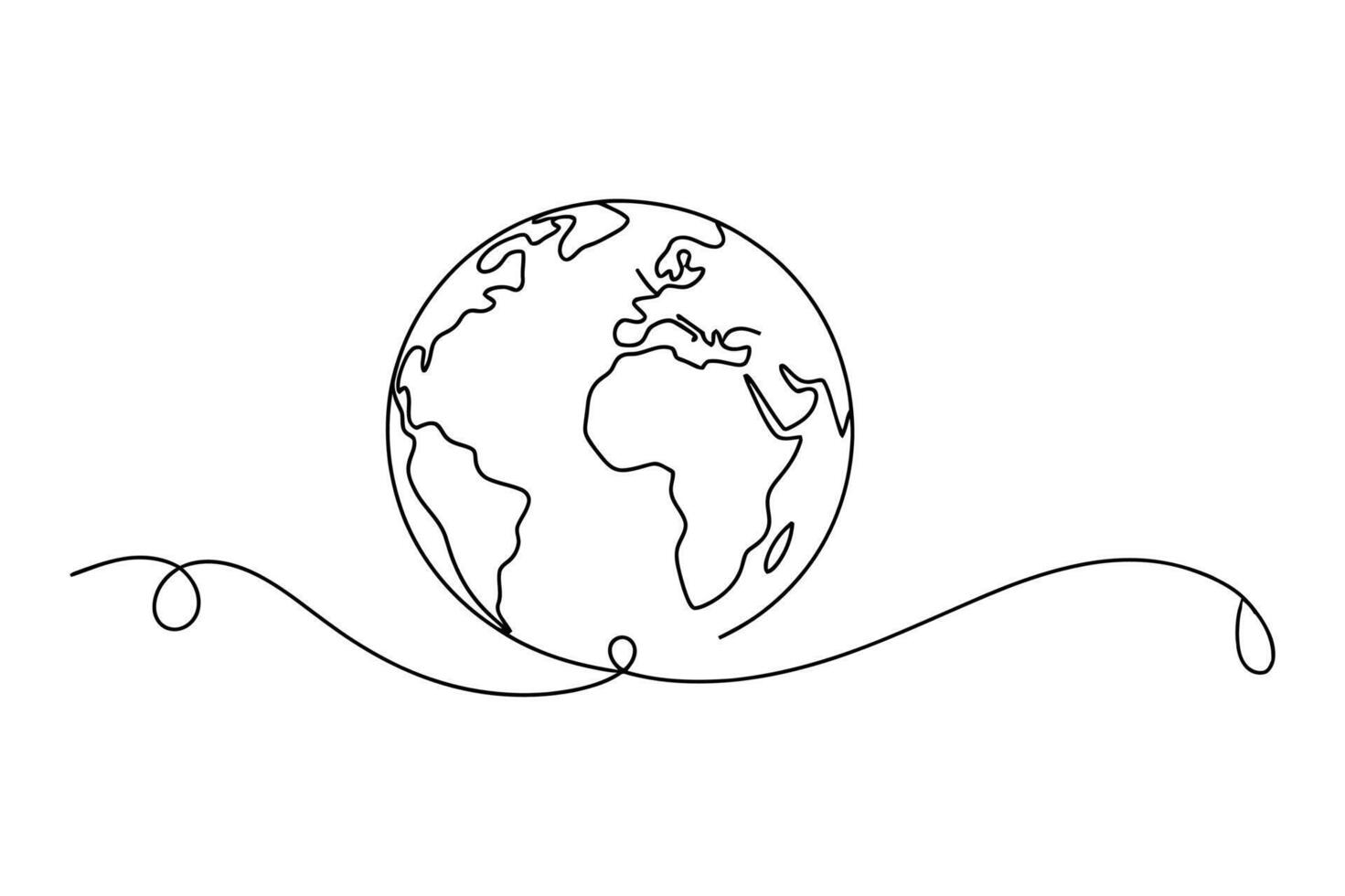 Minimalist continuous line drawing of planet earth with flowing swirls representing global connection and harmony Pro Vector
