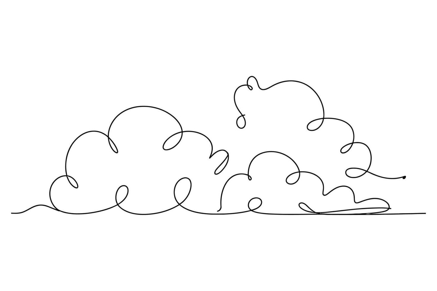 Minimalist continuous line drawing of fluffy cumulus clouds against a clean white background representing a simple sky Pro Vector