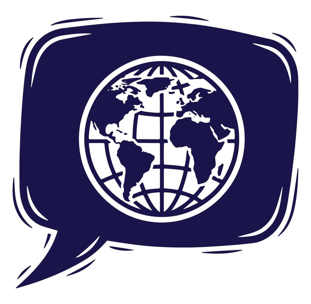 Globe earth map inside speech bubble representing global communication and dialogue Pro Vector