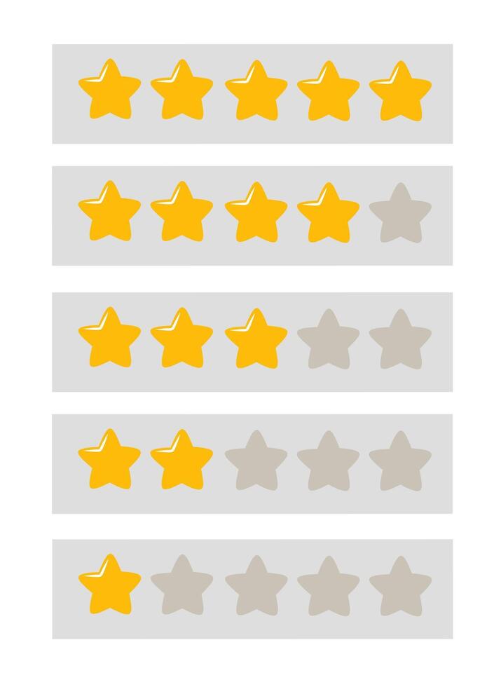 Flat cartoon style rating stars from one to five showing different evaluation levels, designed for customer review, feedback, and user experience interface with minimal shading. Pro Vector
