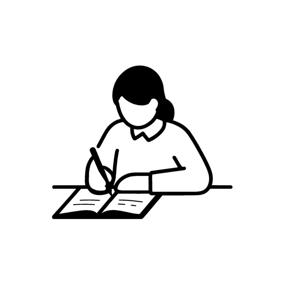 Focused student writing in a notebook at a desk capturing the essence of education and concentration in a minimalist clean line art style illustration vector