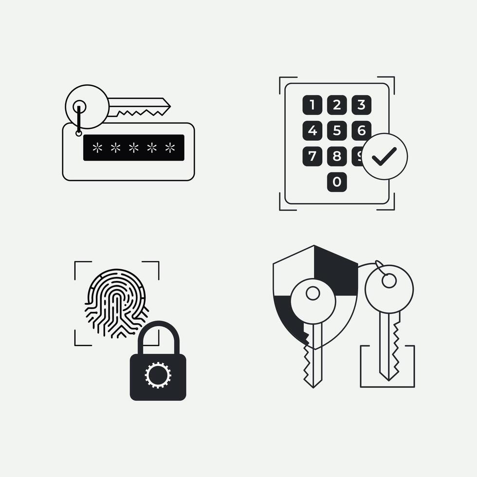Line Art Security System with Key, Passcode, Fingerprint and Shield Icons Pro Vector