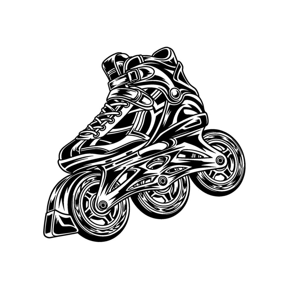 Detailed of a single inline skate with three wheels, isolated on white background, showcasing intricate design and dynamic lines vector