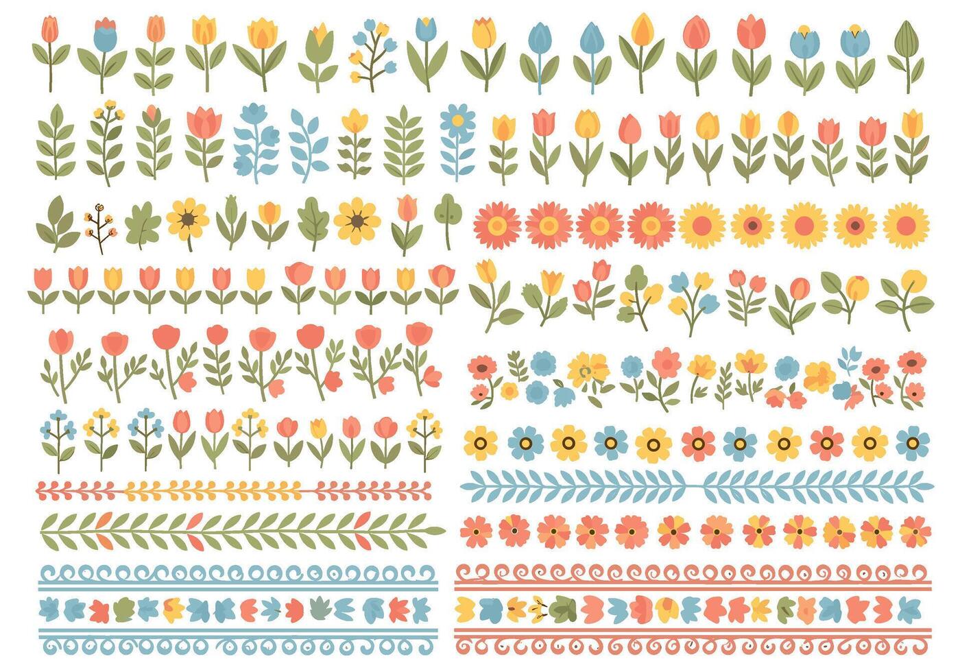 Delicate floral elements in a flat design style arranged on a white background creating a cheerful and vibrant spring botanical illustration vector