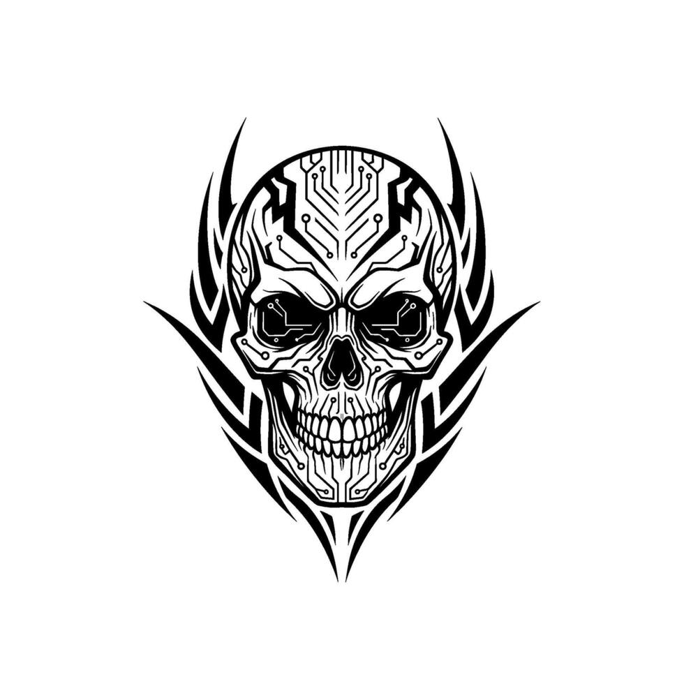 Tribal cybernetic skull with circuit patterns and flamelike accents, isolated on white background vector