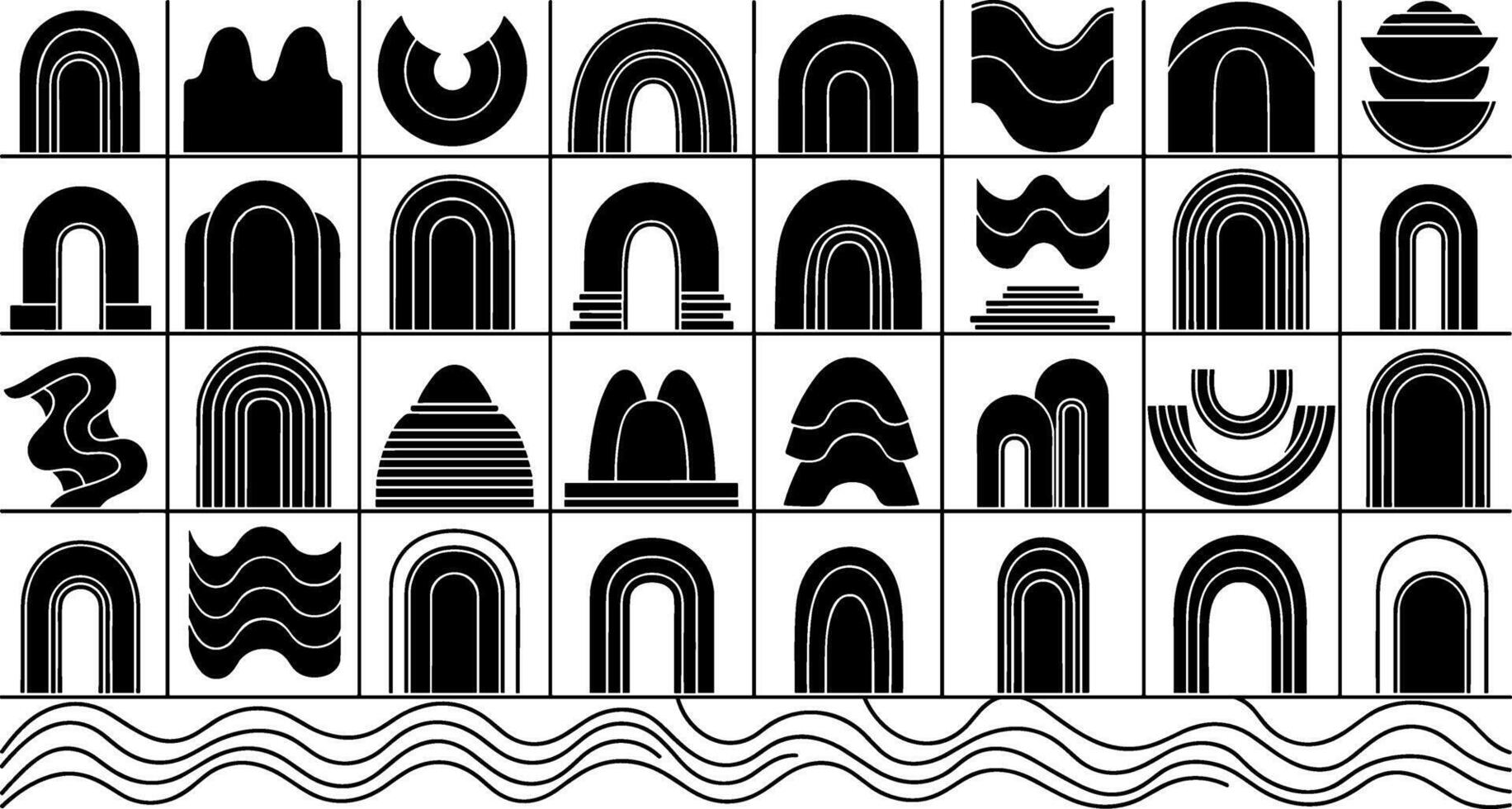 Creative set of modern abstract archway symbols and minimalist geometric forms Pro Vector