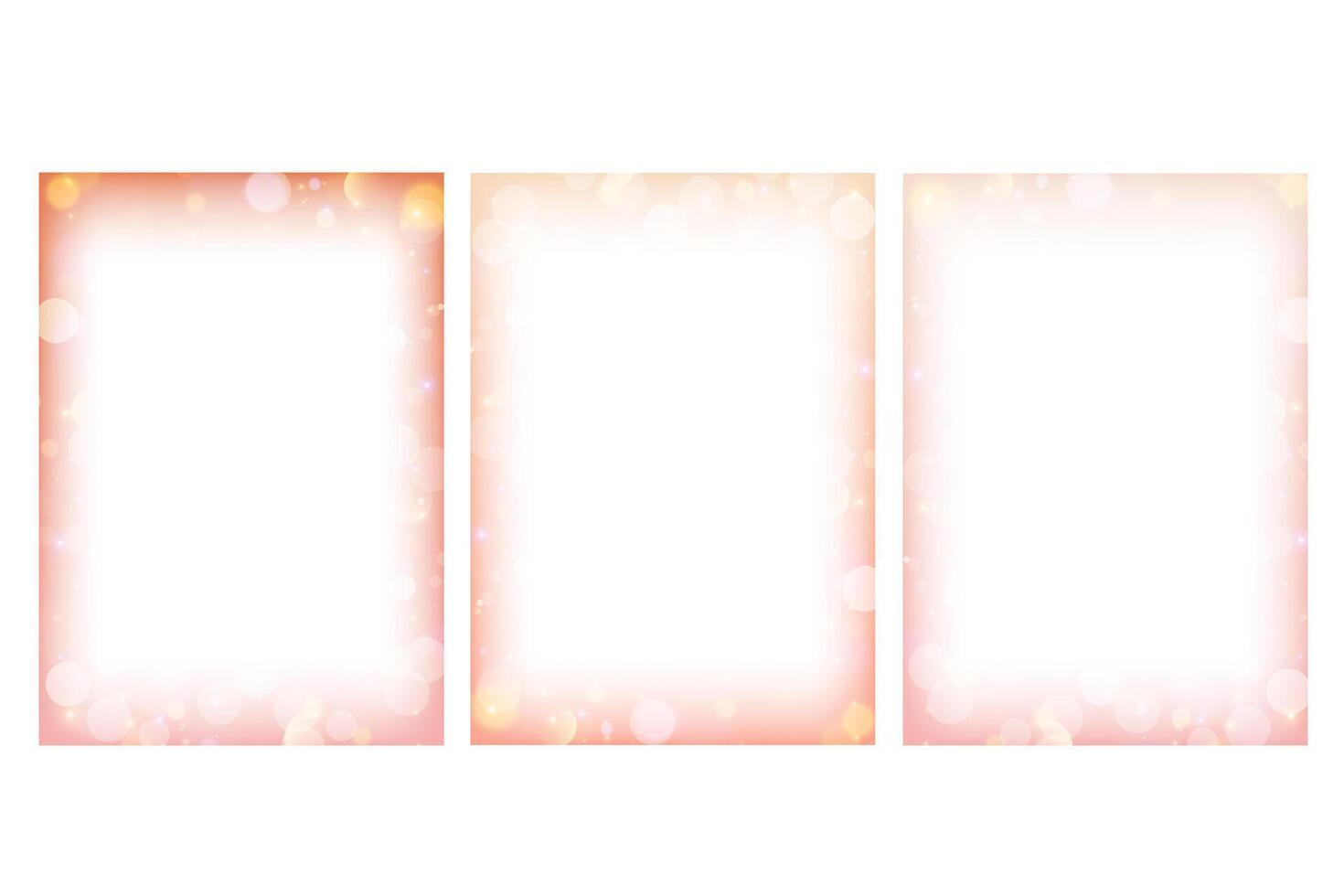 Gradient pastel frames with golden bokeh. Abstract borders. Cute yellow templates with blurred transparent edge. Girly soft decorative banner and poster. Pro Vector