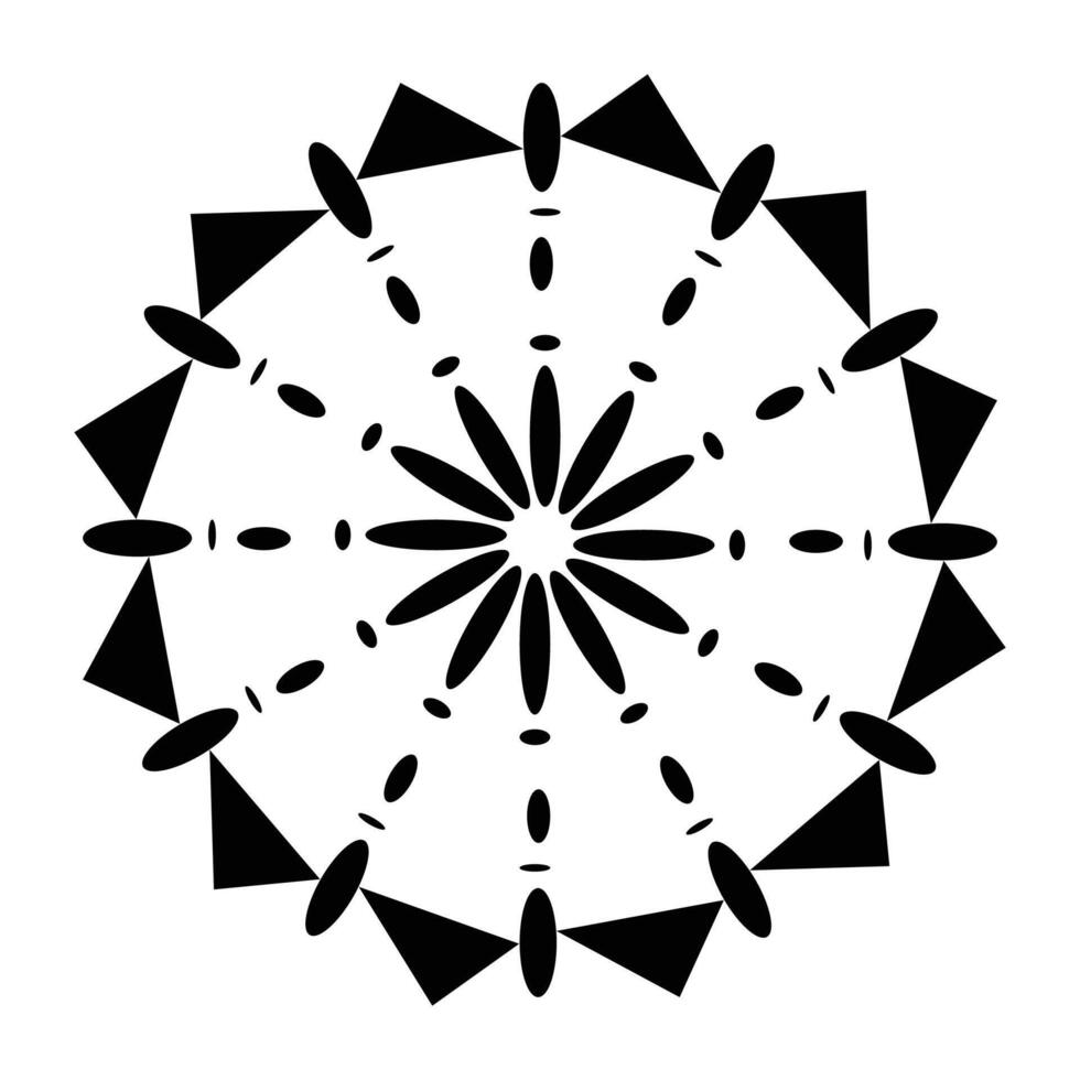 Intricate black and white geometric mandala design with repeating patterns and sharp angles Pro Vector