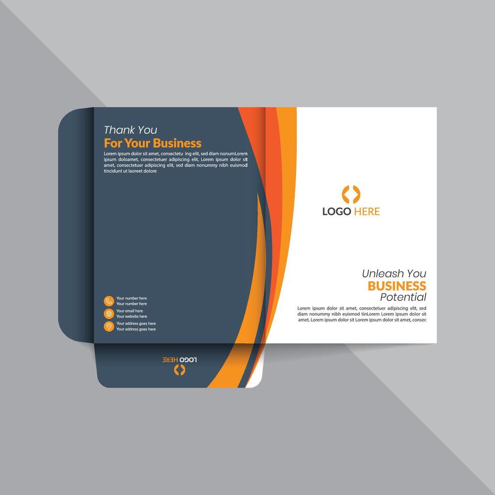 Modern Dark Blue and Orange Presentation Folder with Dynamic Curved Design vector