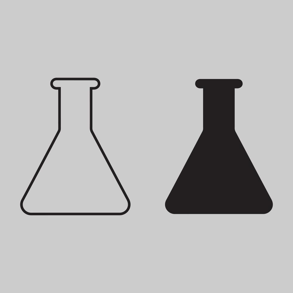 Laboratory Flask Icon Set illustration Outline and Solid Black Erlenmeyer Flask Silhouettes for Science, Education, and UI Design Themes Pro Vector