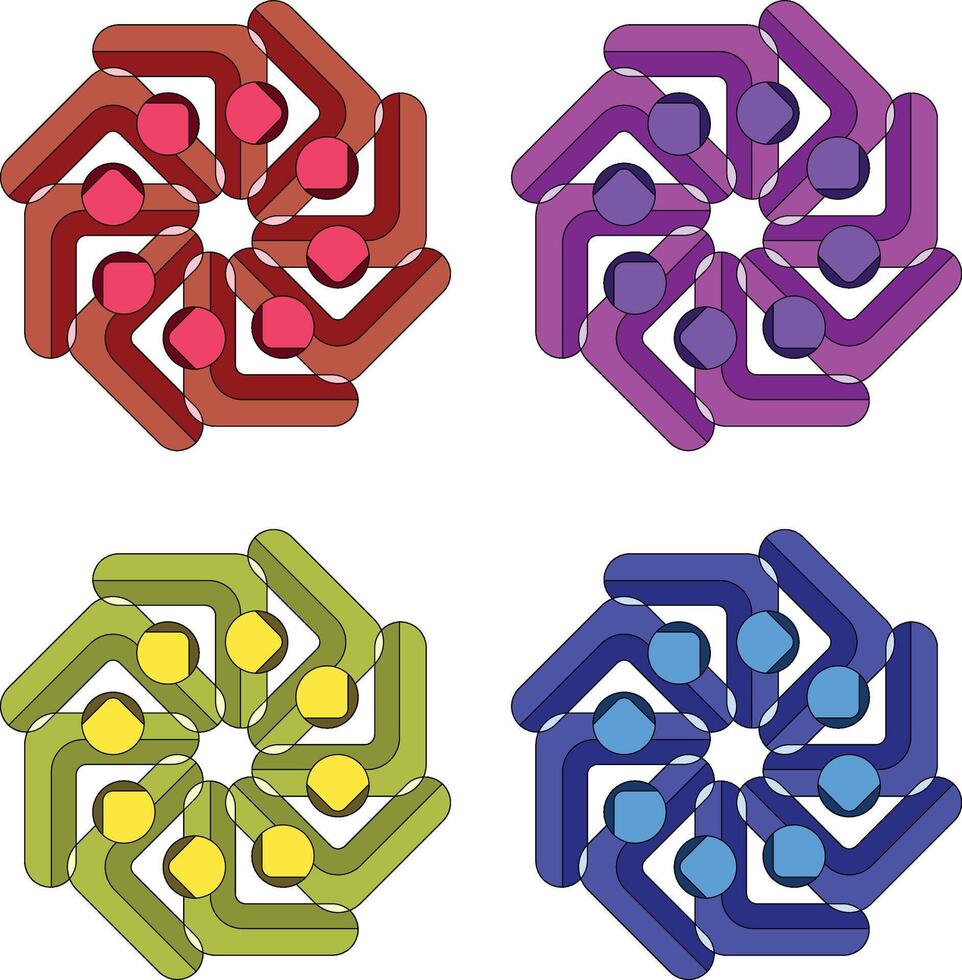 Geometric Circular Pattern with Interlocking Shapes in Red, Purple, Green, and Blue Ideal for Decorative Elements and Visual Identity Pro Vector