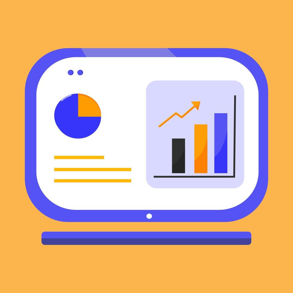 Flat illustration of a data chart dashboard showing business performance and growth analytics. Flat Icon Illustration Pro Vector