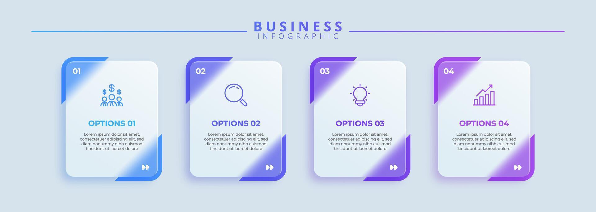 Design template for infographic labels with icons and 4 options or steps. Suitable for process diagrams, presentations, workflow, banners, infographic Pro Vector