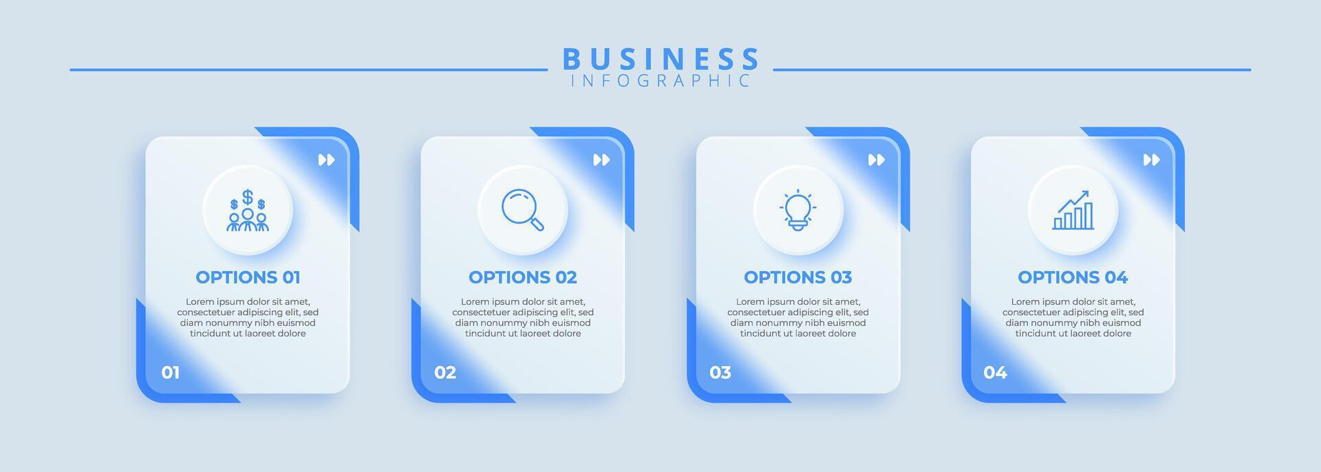 Design template for infographic labels with icons and 4 options or steps. Suitable for process diagrams, presentations, workflow, banners, infographics. Pro Vector