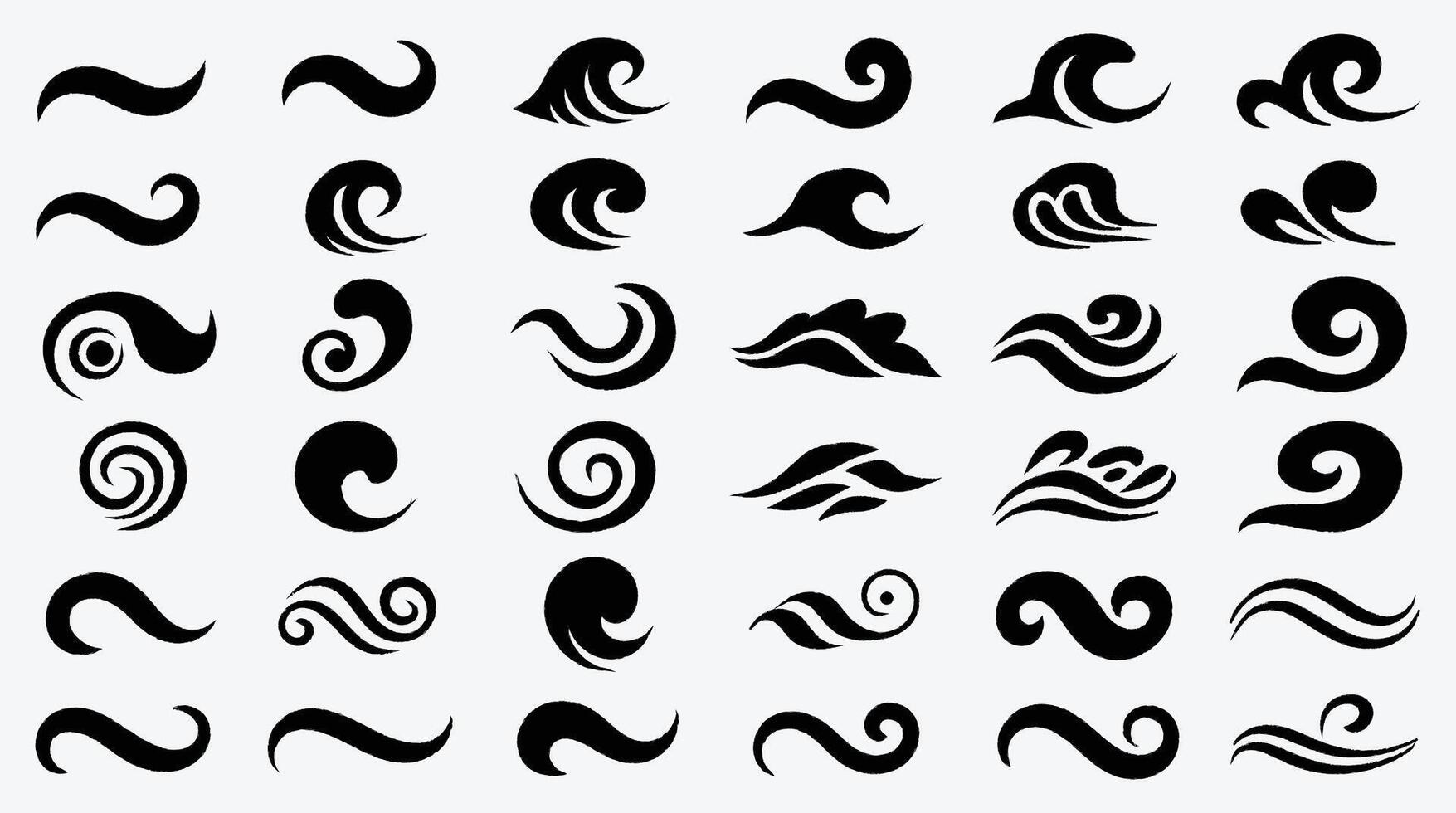 Set of diverse black wave icons for design project use Pro Vector