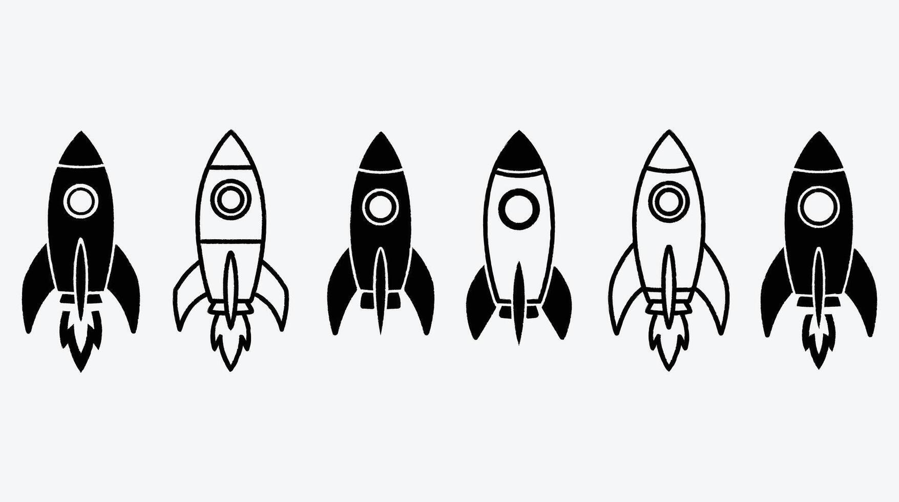 Rockets in a row launch to success minimal icon concept Pro Vector