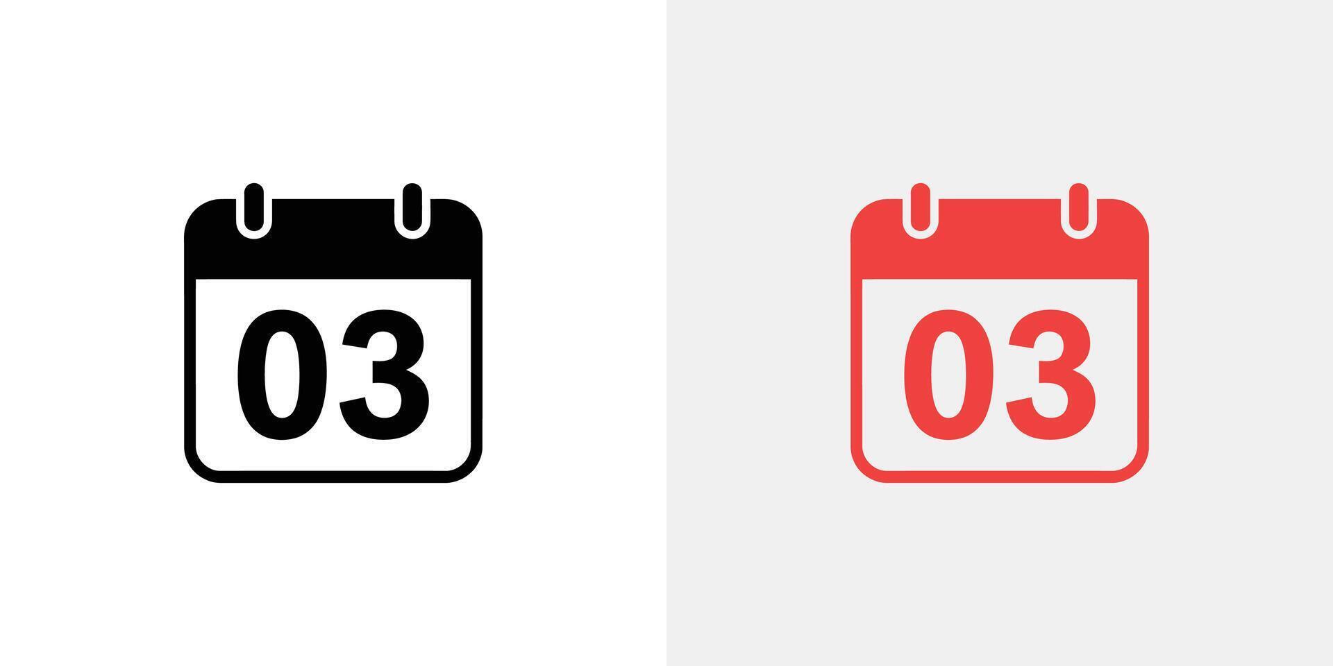Black and Red Calendar Icon Set Showing the Third Day on a White Background Pro Vector