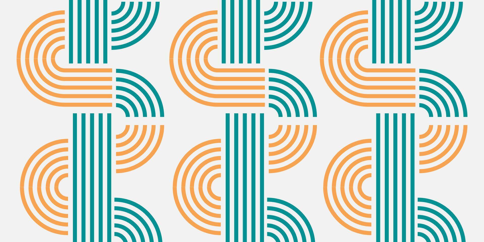 Geometric Pattern with Teal and Orange Arcs and Lines Design. Pro Vector