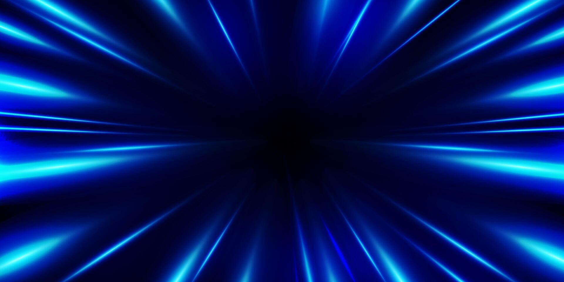 Warp tunnel blue light rays of speed motion directed towards the center, Futuristic neon stripes effect of dynamic acceleration of motion, Light illusion bg Pro Vector