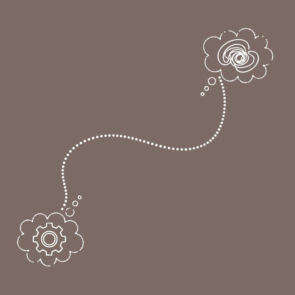 Abstract conceptual representation of interconnected ideas with gear and cloud symbols on a neutral Pro Vector