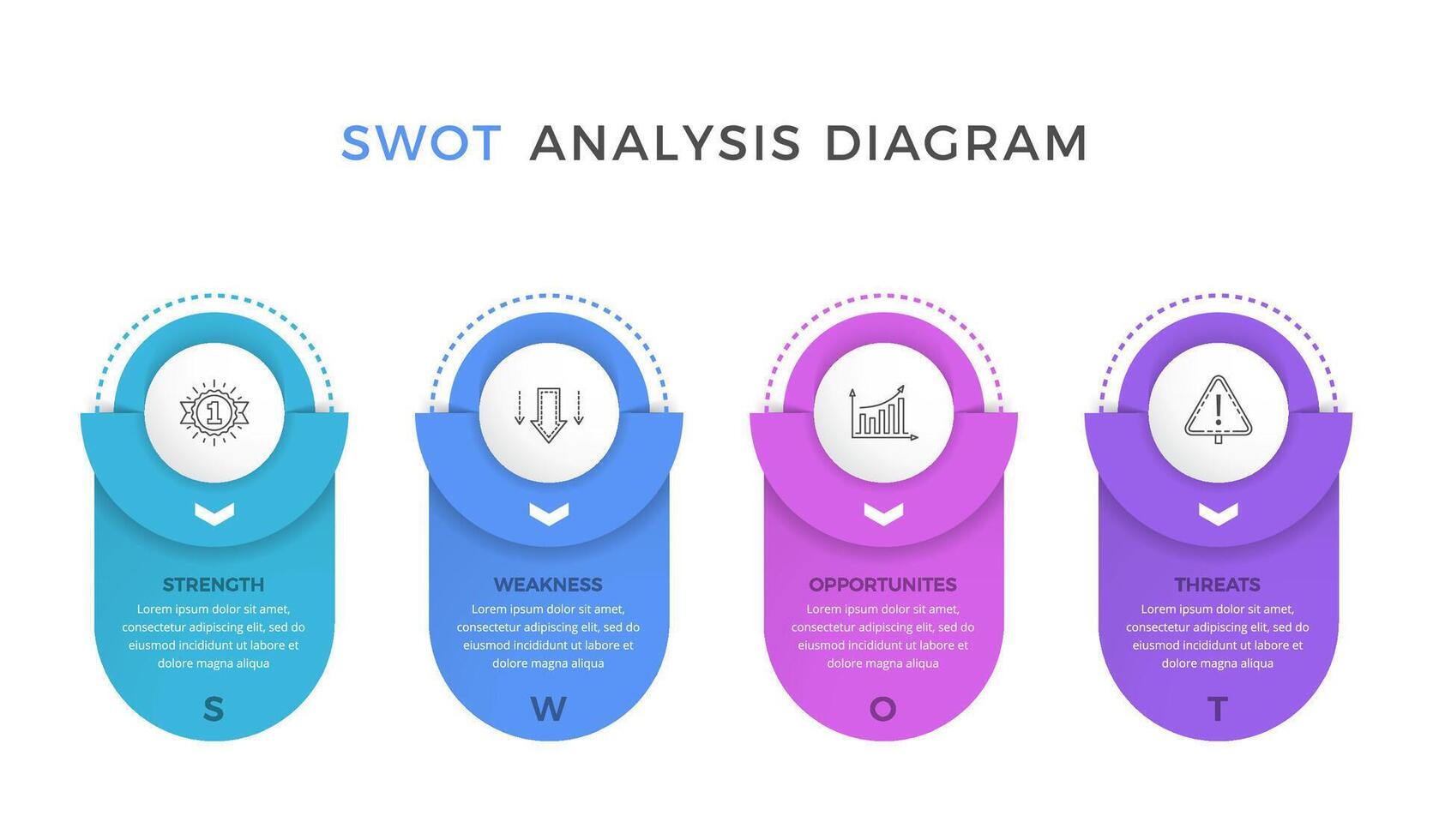 SWOT analysis diagram with vertical text elements Pro Vector
