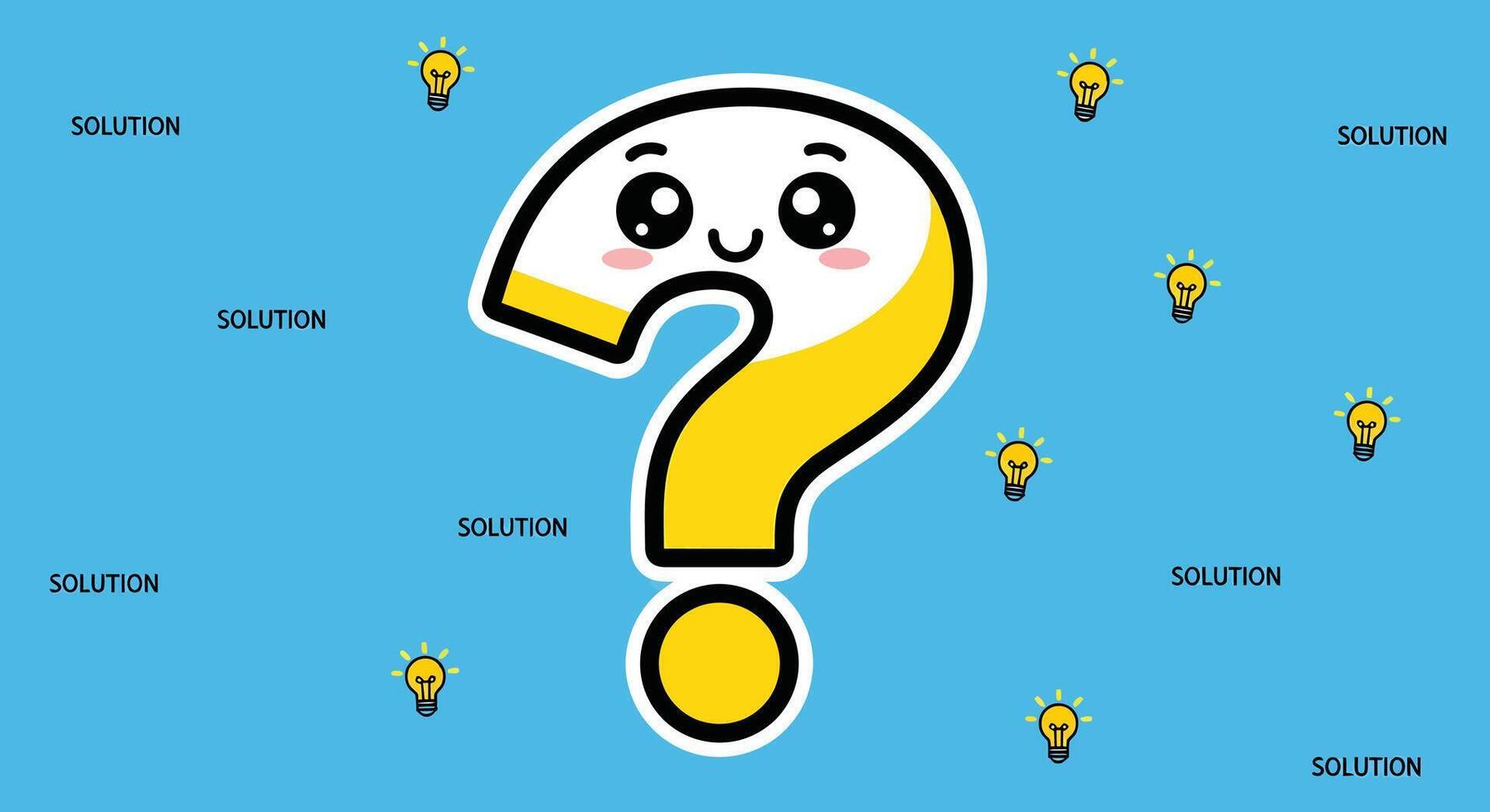 Cute Question Mark with Light Bulbs Solution, Idea, Problem Solving, Cartoon Pro Vector
