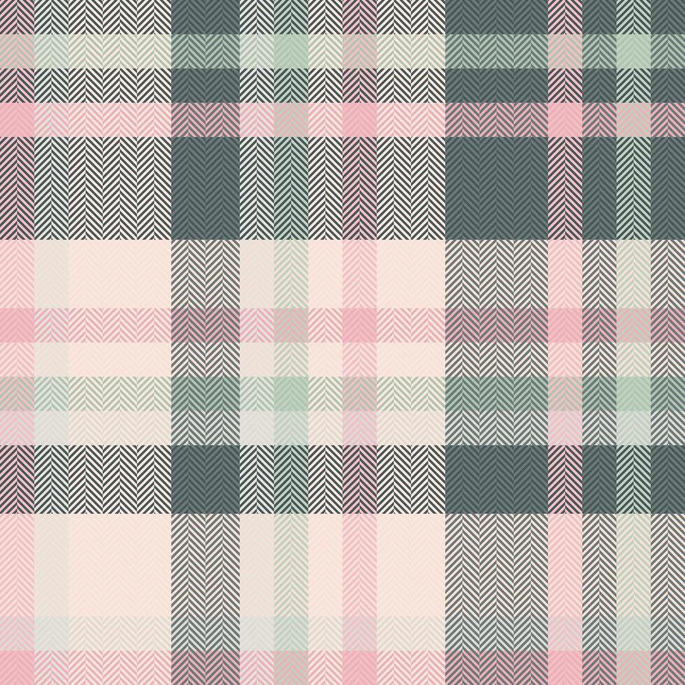 Elegant plaid pattern in soft pinks, greens, and grays. Classic herringbone texture adds depth. Versatile for backgrounds, textiles, or design elements. Pro Vector