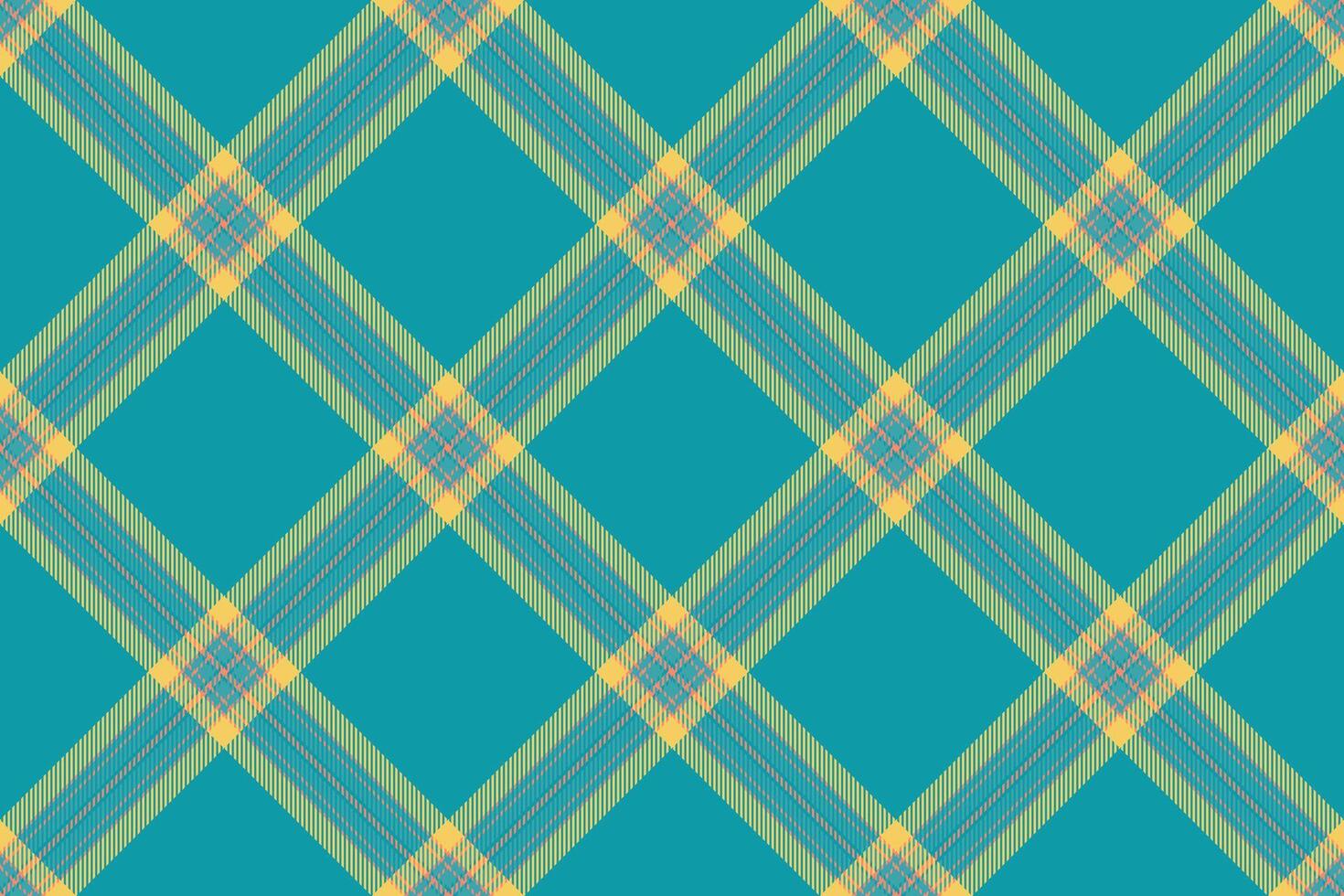 Seamless plaid pattern with teal background and yellow and tan stripes. Versatile textile design, perfect for backgrounds, apparel, or web design projects. Ideal for adding a classic touch. Pro Vector