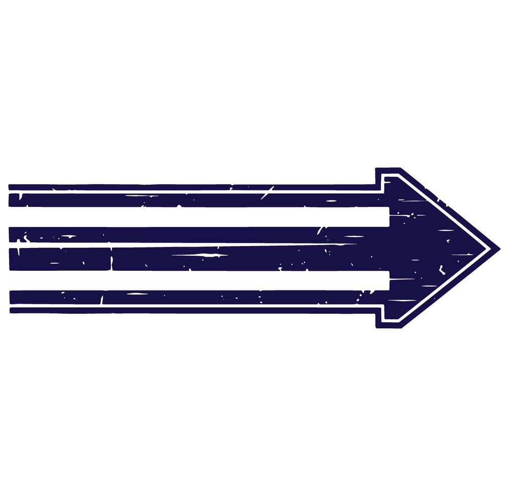 Distressed navy blue arrow with three horizontal lines pointing to the right on white background Pro Vector