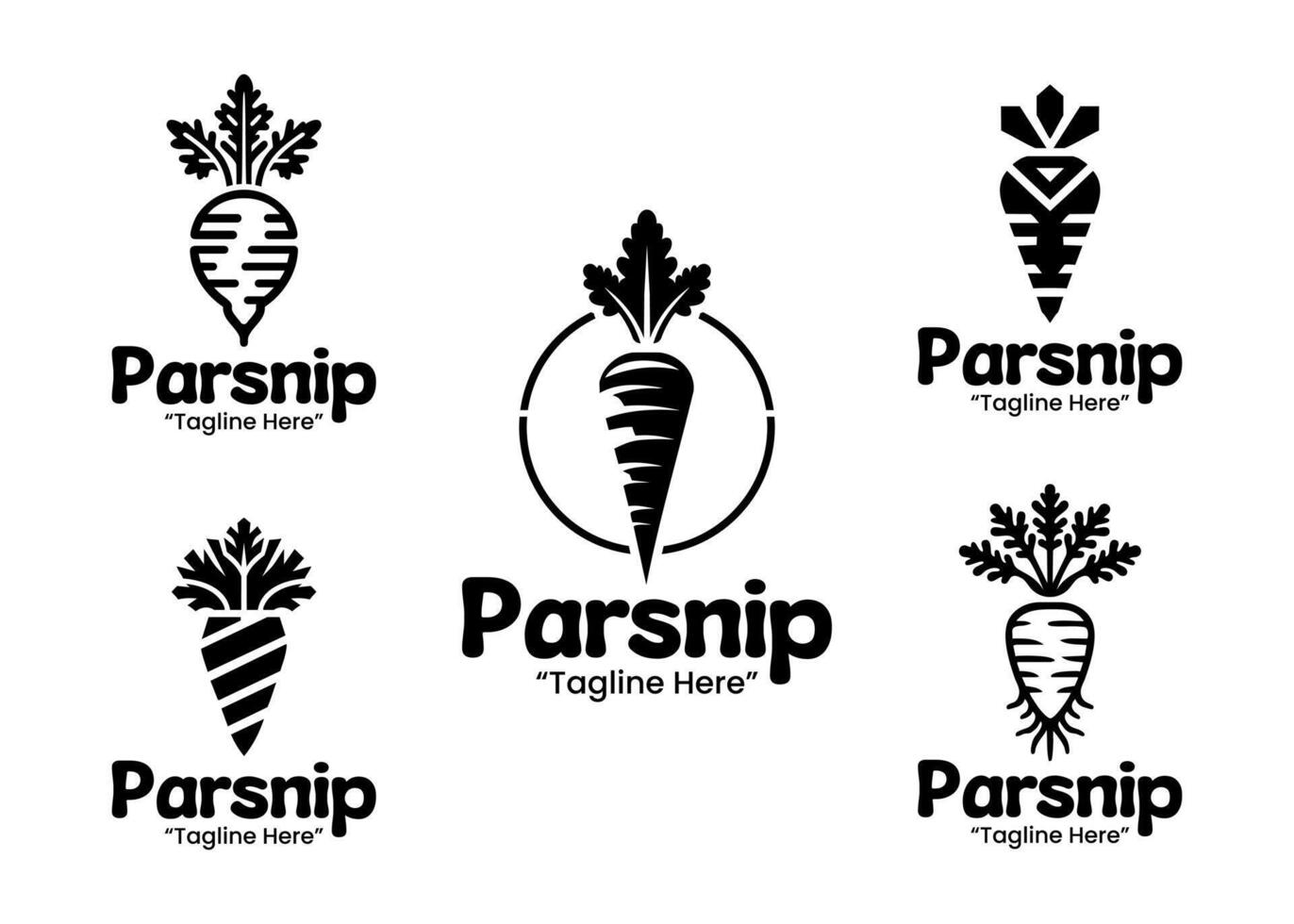 5 Parsnip Logo Set Nutritious and Fresh Branding Collection Black and White Version vector