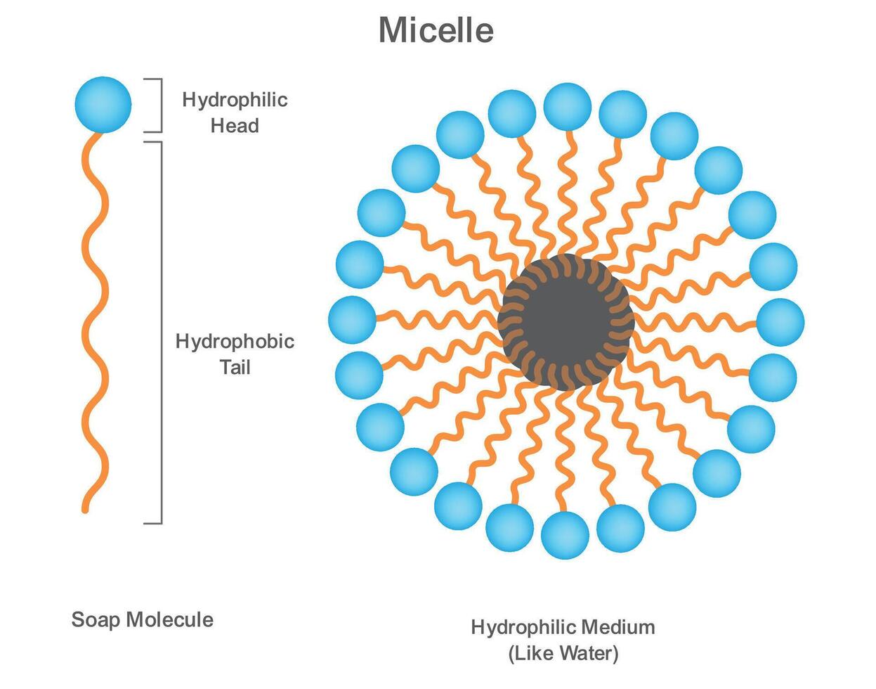 Science Diagram Explaining Soap Micelle Structure with Lyophilic Head and Lyophobic Tail Pro Vector