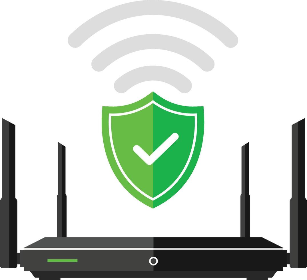 Router with green shield and wifi signal icon wireless internet Pro Vector