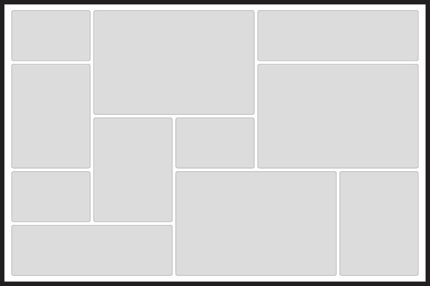 Grid layout with ten rectangular placeholders for content and rounded corners template Pro Vector