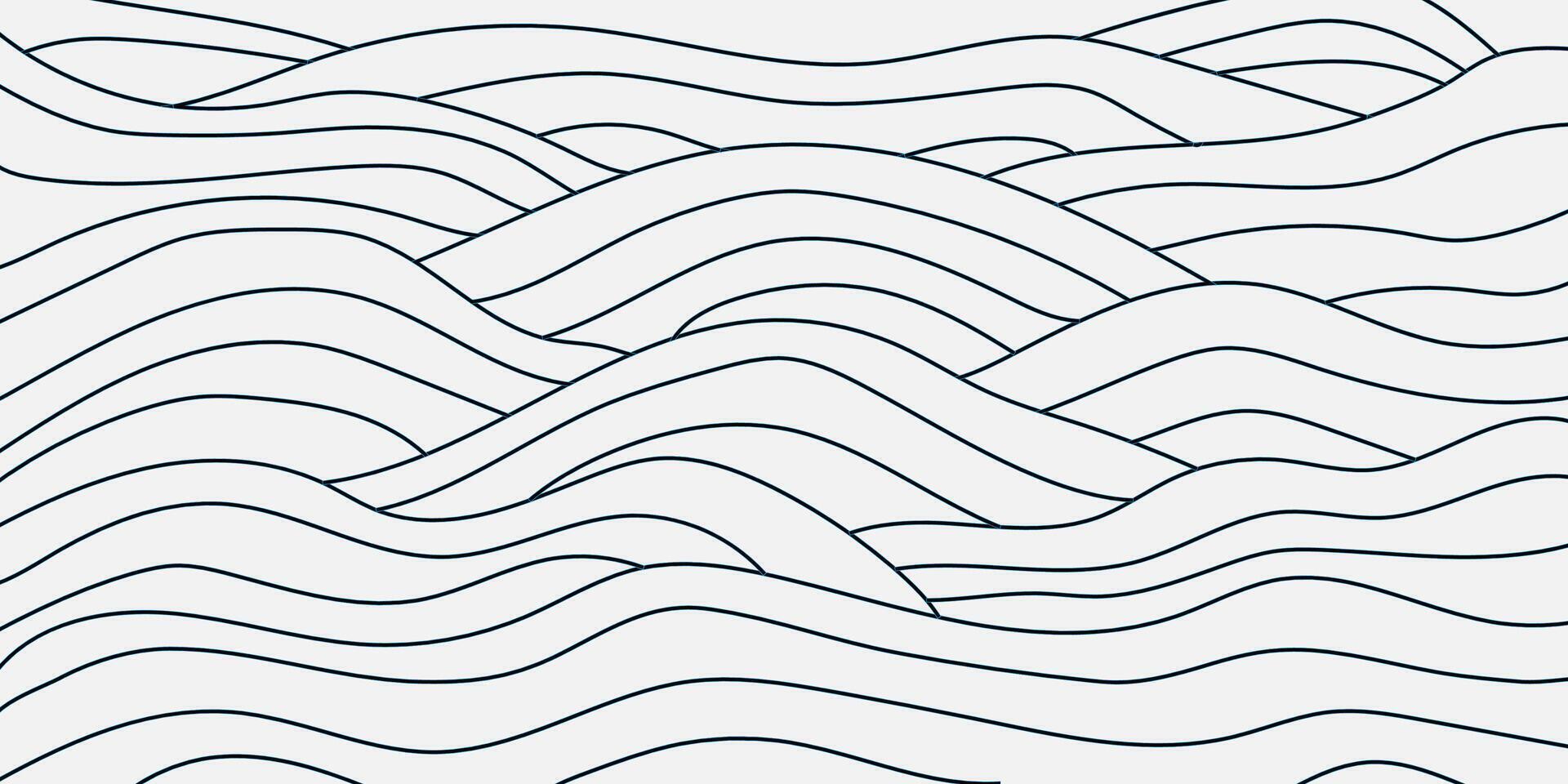 Minimalist background with hand-drawn black and white wavy lines creating an abstract pattern of rolling hills and sea waves Pro Vector