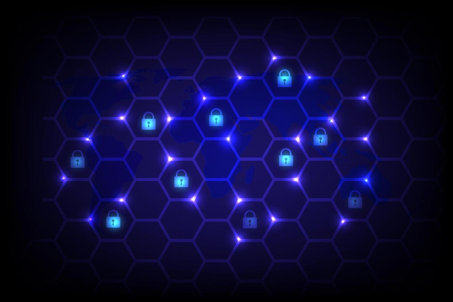 Digital world map with glowing locks representing global cybersecurity, data protection, and secure network connections Pro Vector