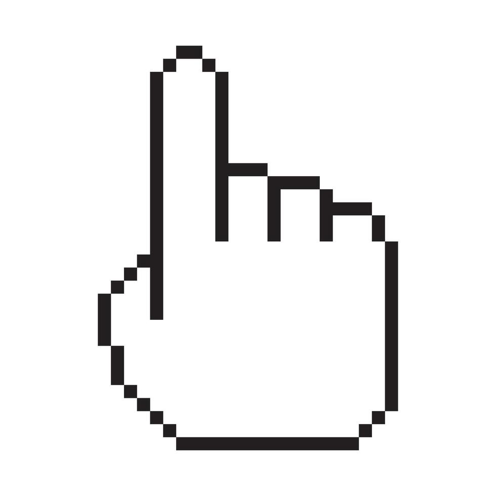 A pixelated computer cursor hand icon, pointing upwards, on a white background Pro Vector