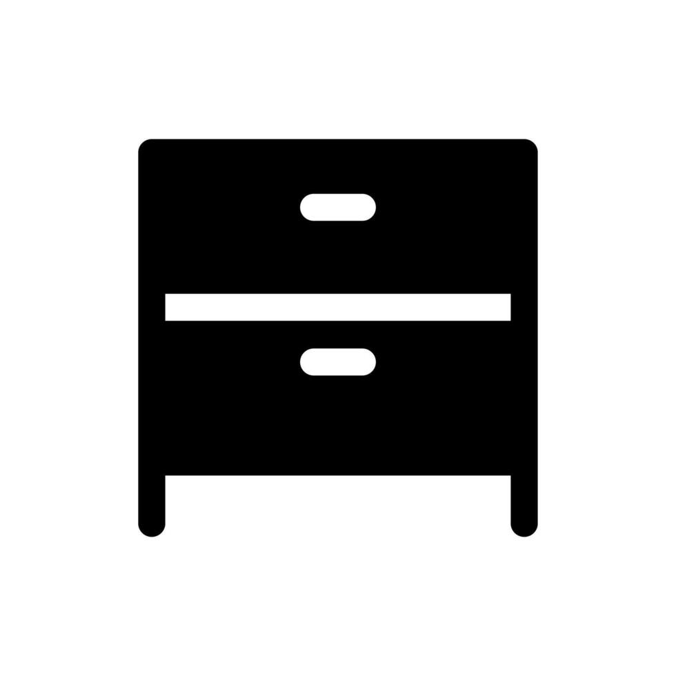 A filled graphic of a storage unit with multiple horizontal drawers. vector