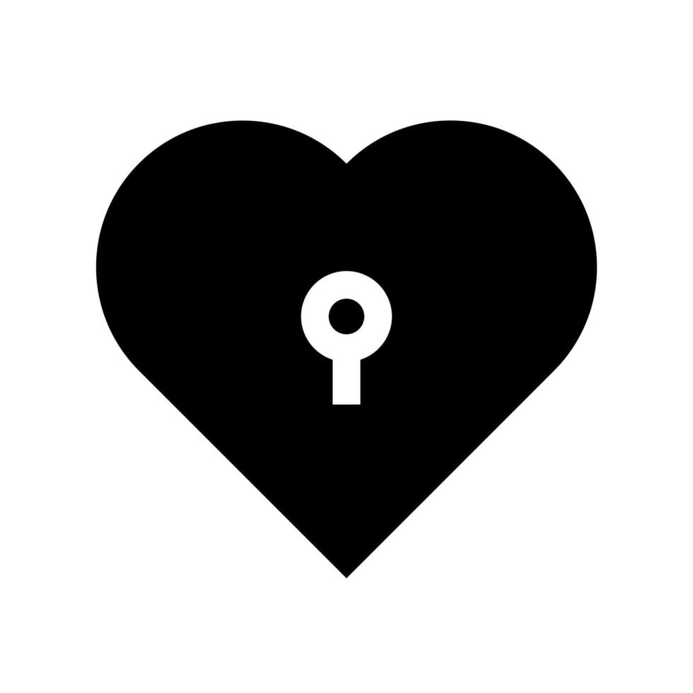 A filled graphic of a key placed near a heart, symbolizing the key to heart access. vector