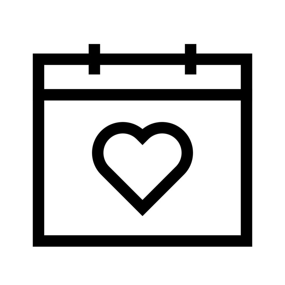 An outline icon of a calendar marked with a heart, symbolizing an anniversary or date. vector