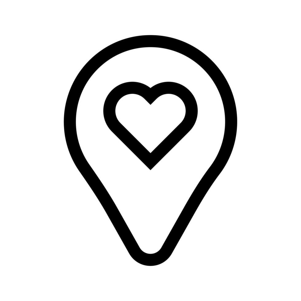A linear graphic of a map pin on a heart, symbolizing a beloved map location. vector